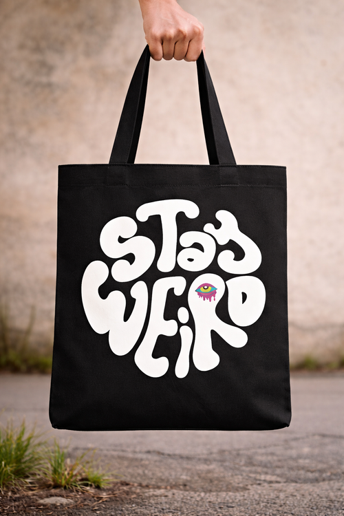Stay Weird Black Graphic Tote Bag – Large Statement Print